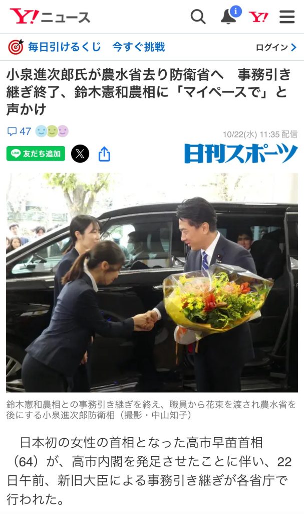 先日小泉進次郎さんが農水省から防衛省へ移られましたが、みなさま、手にしていた花束、ご覧になりましたか?